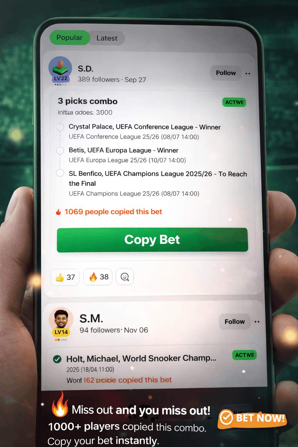 On the Social Feed, you can see which bets are being copied the most. When 1,000+ players copy a combo, that tells you something.